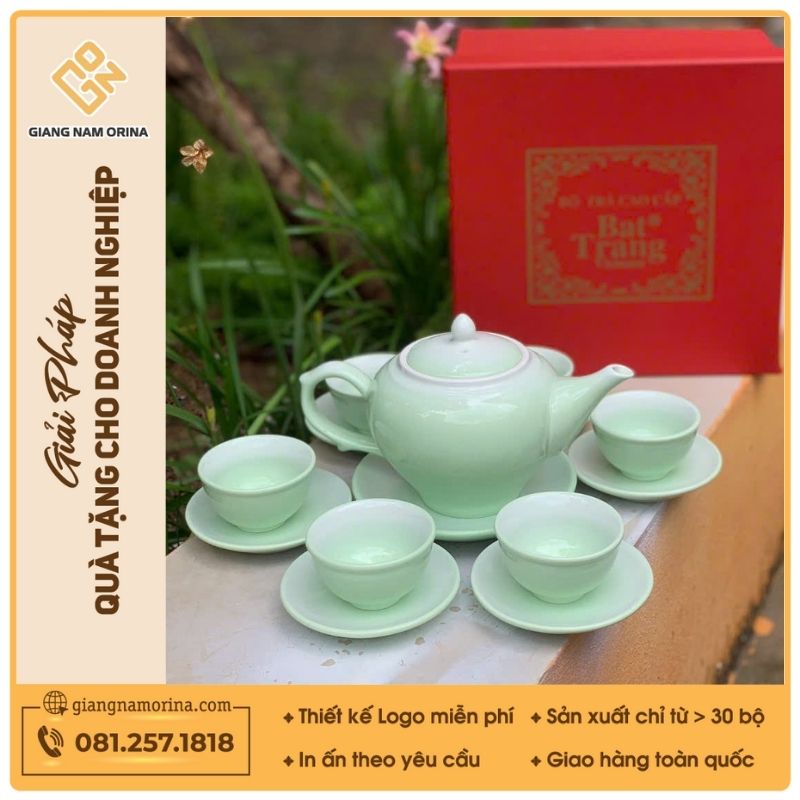 Là đơn vị cung cấp quà tặng doanh nghiệp in logo uy tín trên toàn quốc, Giang Nam Orina tự hào mang đến Bộ ấm trà Bát Tràng men ngọc cao cấp, giá tốt, phù hợp cho mọi mục đích sử dụng và làm quà biếu.
