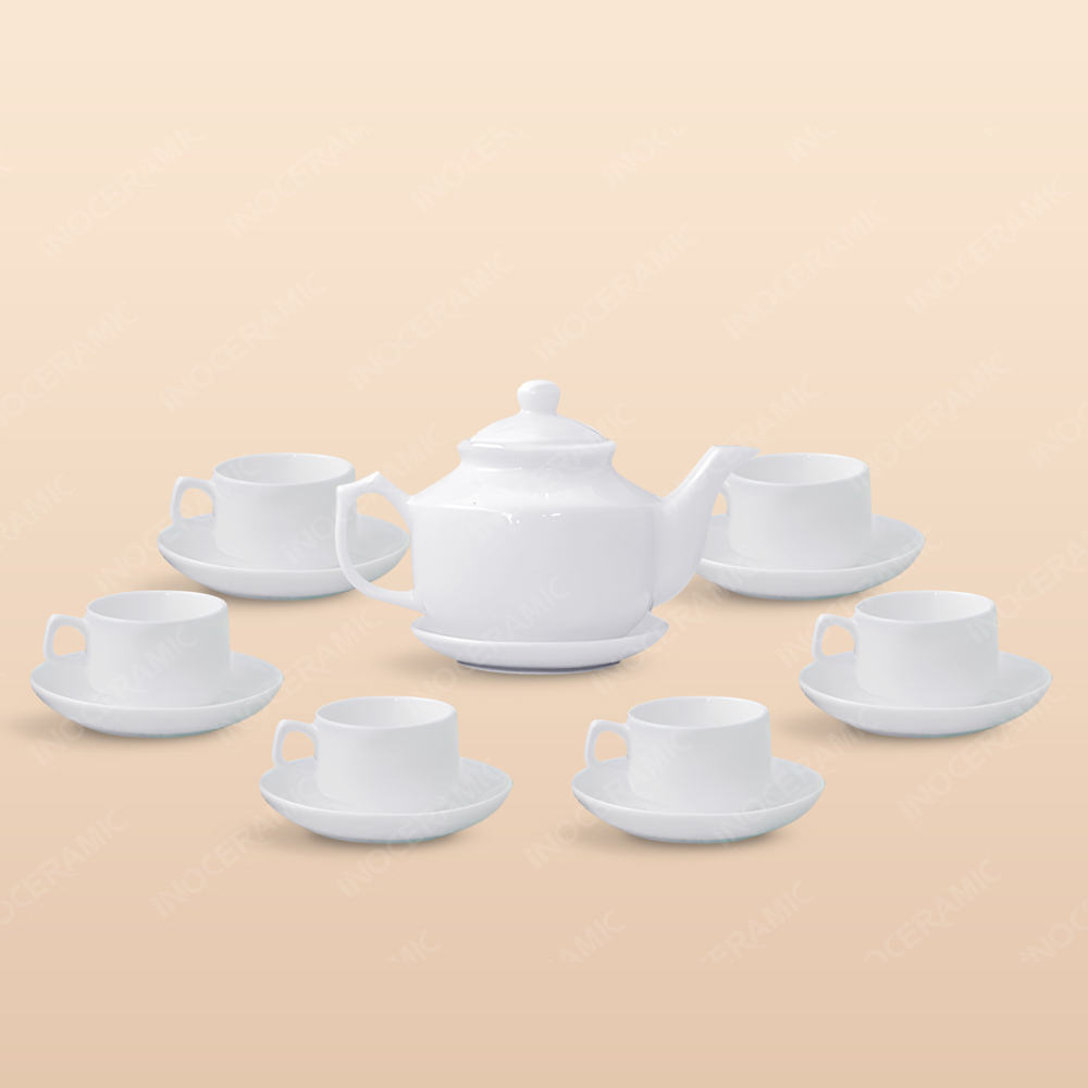 Vì sao nên lựa chọn Bộ trà vuông thấp men trắng in logo tại Giang Nam Orina