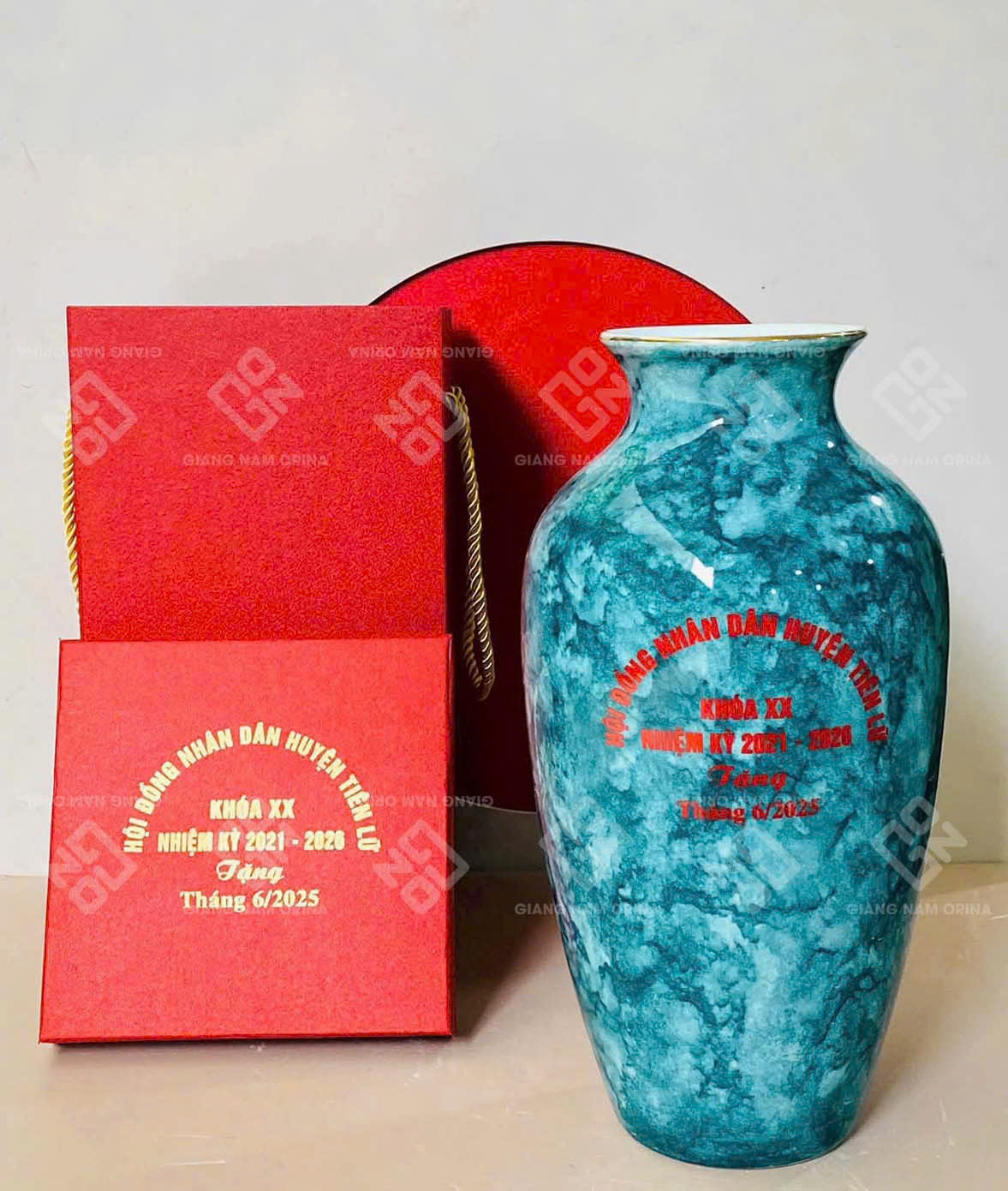 Bên cạnh lọ hoa gốm sứ men vân đá xanh ngọc, Giang Nam Orina còn cung cấp đa dạng các sản phẩm quà tặng doanh nghiệp cao cấp như bộ ấm trà, ly thủy tinh, kỷ niệm chương… Tất cả đều có thể in logo theo yêu cầu, giúp doanh nghiệp nâng cao hình ảnh thương hiệu một cách tinh tế và hiệu quả.
