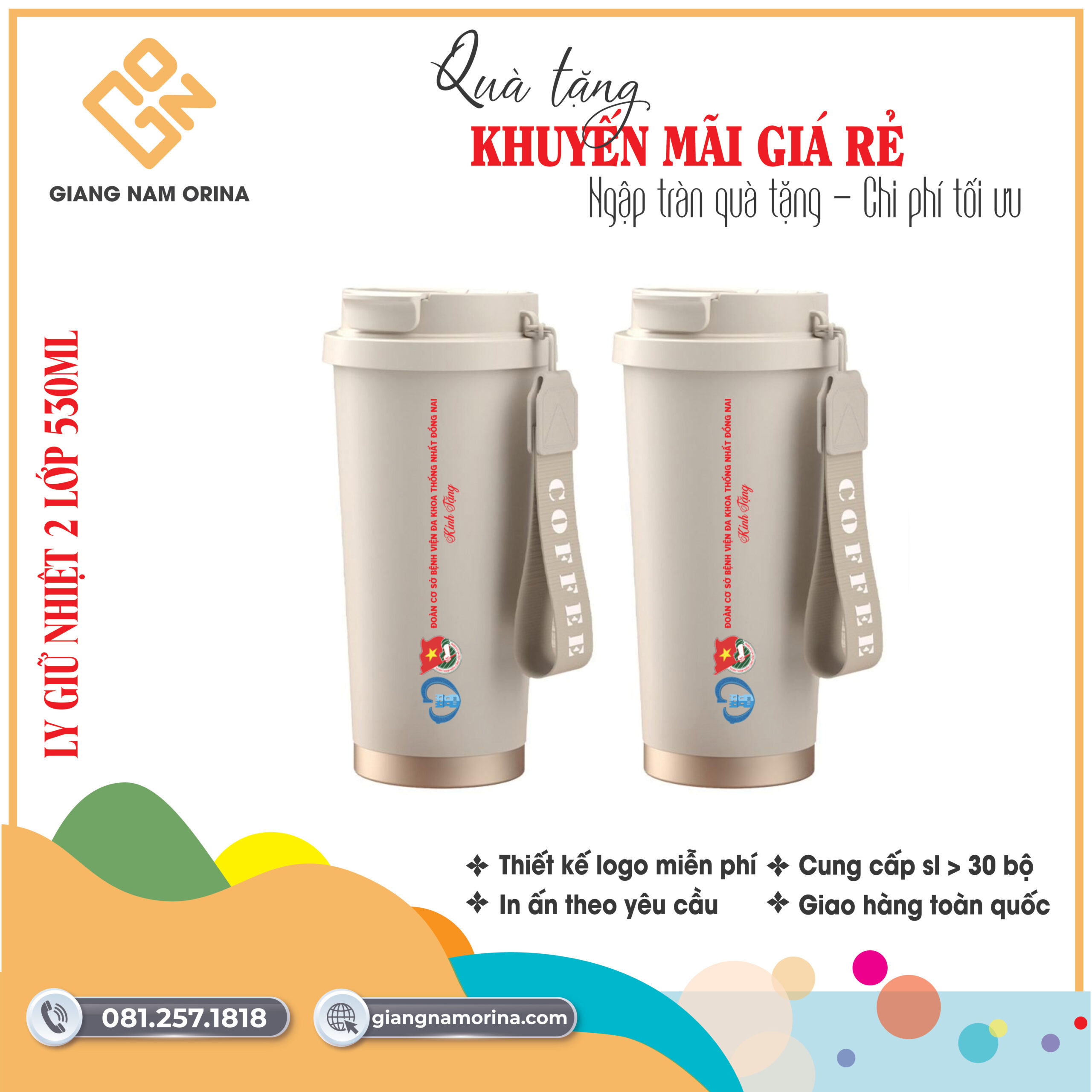 Giang Nam Orina cam kết mang đến những chiếc bình giữ nhiệt chất lượng cao, giá cả phải chăng cùng dịch vụ chuyên nghiệp. Với kinh nghiệm nhiều năm trong lĩnh vực quà tặng doanh nghiệp, chúng tôi luôn cung cấp sản phẩm đạt chuẩn chất lượng, nguồn gốc rõ ràng. Hãy để Giang Nam Orina đồng hành cùng doanh nghiệp bạn trong chiến lược quảng bá thương hiệu hiệu quả.